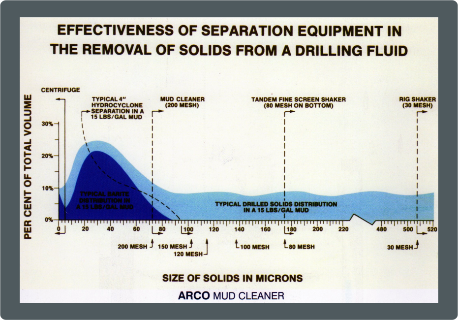 The ARCO MUD CLEANER provides a solution to control the solids in the oil industry. The removal of undesirable fine drilled solids from weighted mud, while returning desirable solids (barite) and valuable mud additives and liquids back to the active system, will save a tremendous amount of money.